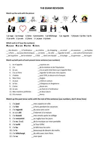 French Year 8 Interactive Worksheet Yr8 French Revision Worksheet